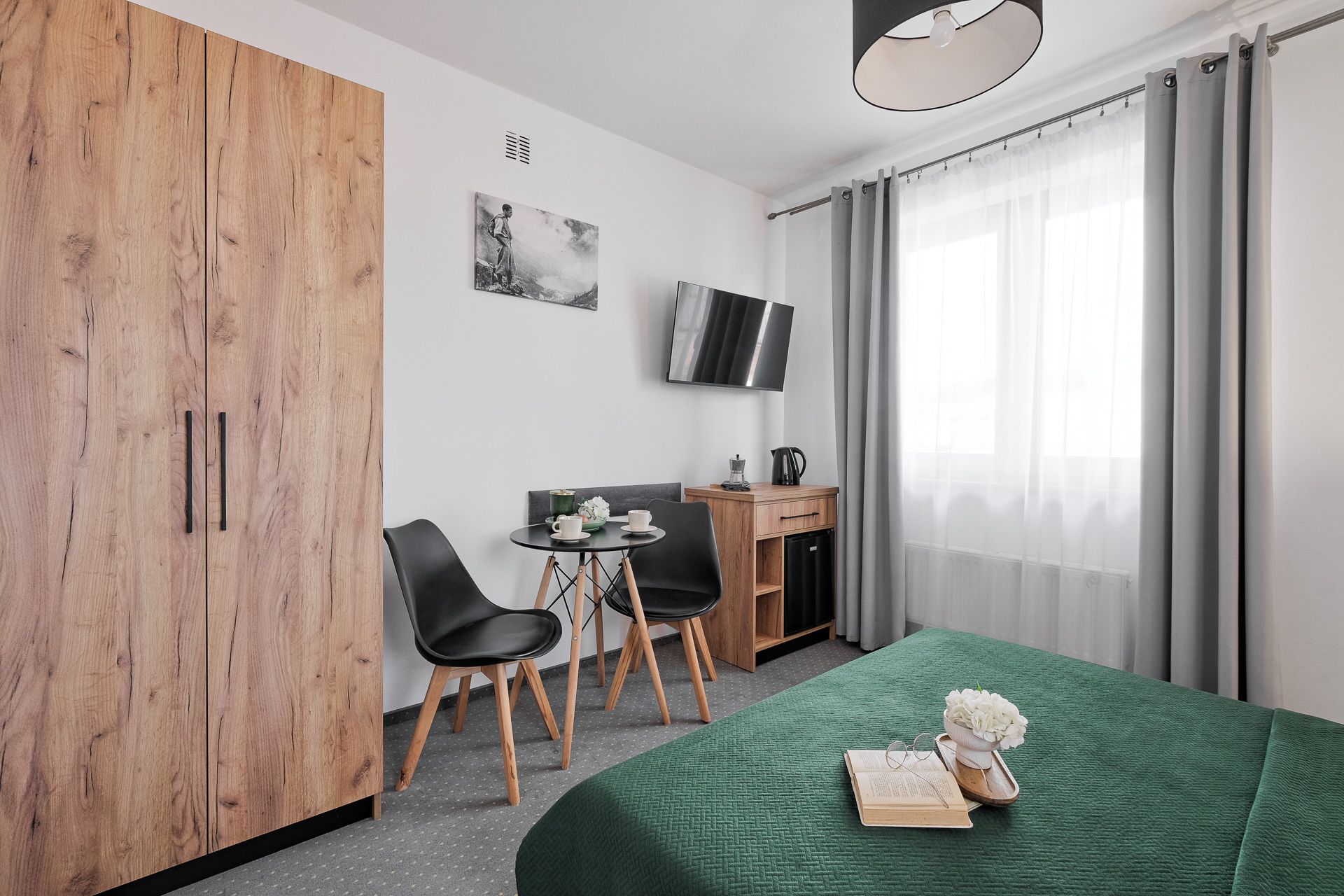 Przytulny, jasny pokój dwuosobowy z wygodnym łóżkiem małżeńskim. Na wyposażeniu: TV, stolik z dwoma krzesłami, czajnik i mini-lodówka. Nowa, przestronna łazienka z prysznicem i dużym lustrem. Idealny dla par szukających komfortu i spokoju po dniu w górach.