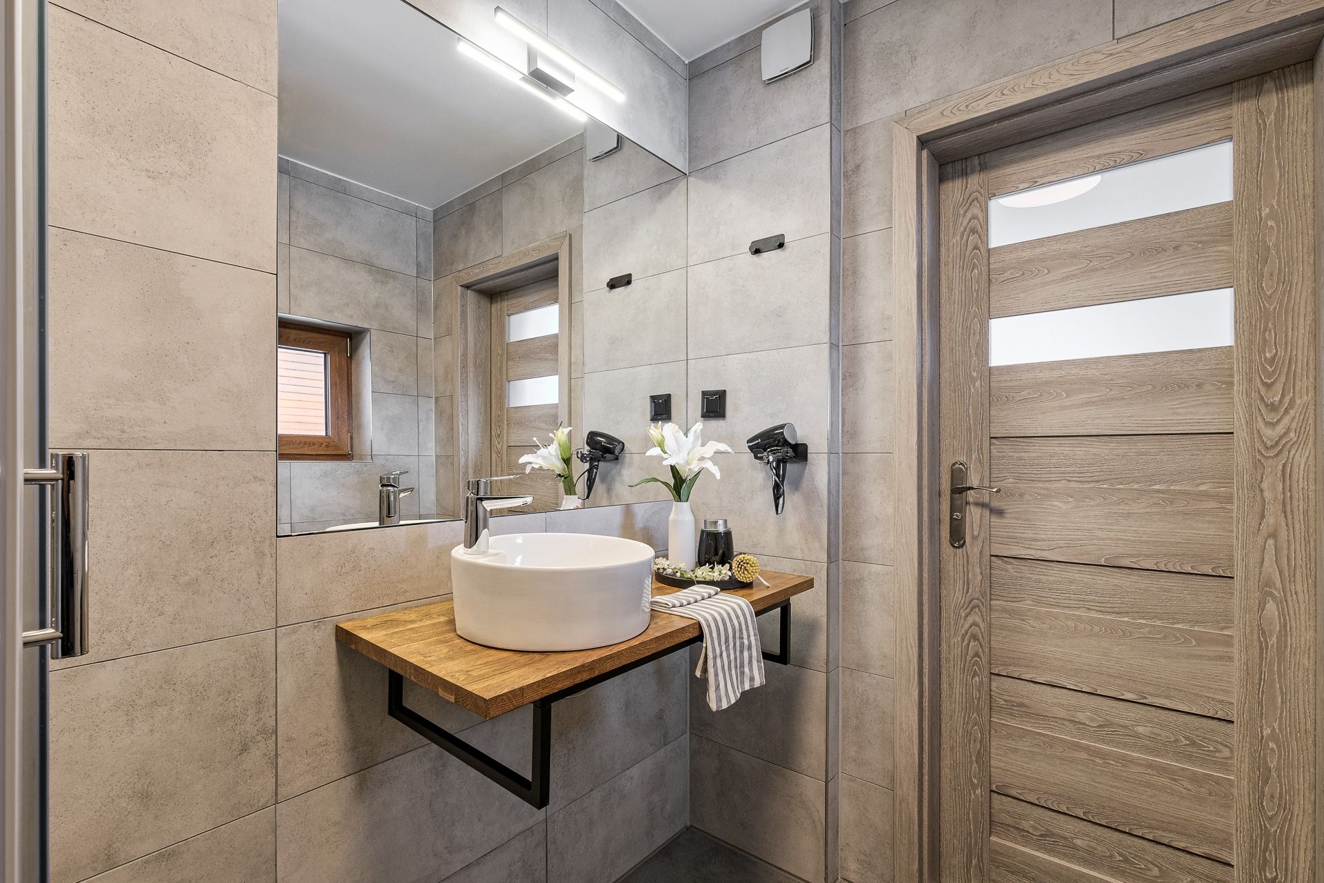 Na poziomie -1 do dyspozycji gości znajduje się przestronna sala kominkowa z przytulnym kącikiem dziecięcym, oraz sauną. To idealne miejsce na wieczorne relaksujące chwile w gronie najbliższych.