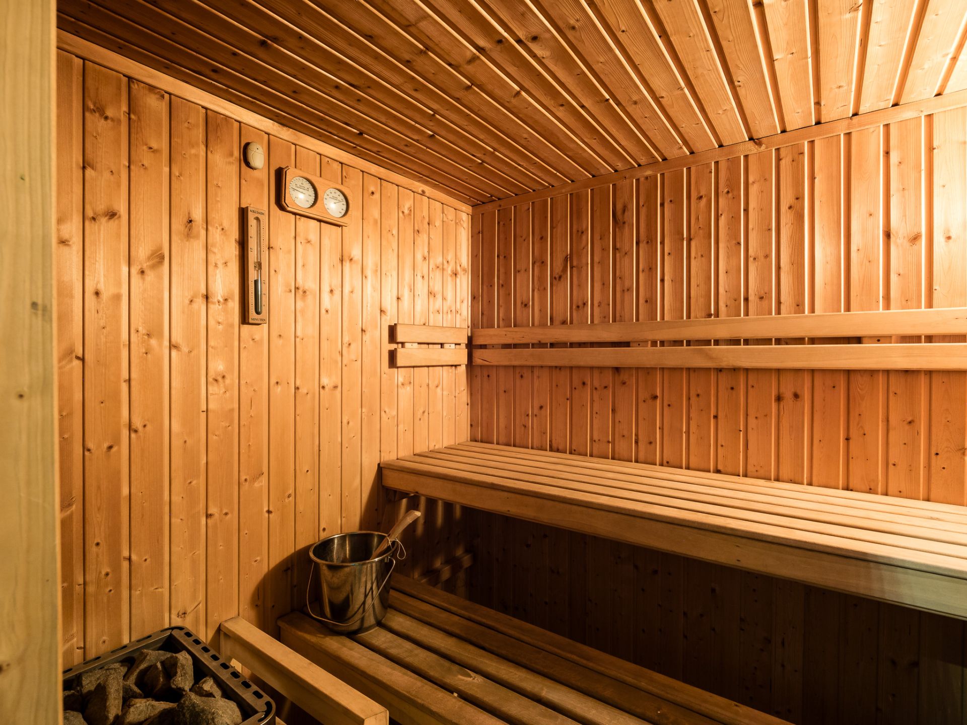 Na poziomie -1 do dyspozycji gości znajduje się przestronna sala kominkowa z przytulnym kącikiem dziecięcym, oraz sauną. To idealne miejsce na wieczorne relaksujące chwile w gronie najbliższych.